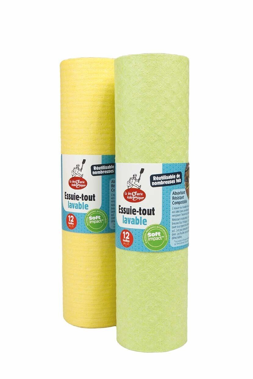 Dettagli: Rotolo con 12 panni spugna grandi lavabili. Biodegradabile, plastic free