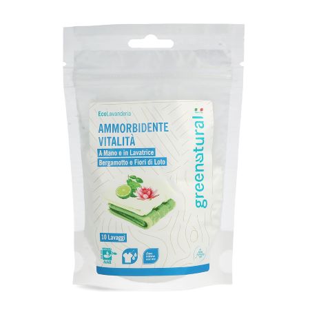 L' Ammorbidente in Polvere Greenatural è formulato con soli ingredienti naturali, biodegradabili e provenienti da fonti rinnovabili. La sua innovativa formulazione in polvere permette di risparmiare lacqua, elemento prezioso che va preservato. Arricchito con essenza di Bergamotto e Fiori di Loto che donano al bucato un avvolgente e dolce profumo di pulito che dura nel tempo.
