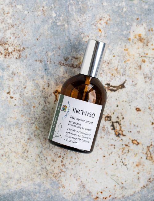 ALCOHOL DI GRANO BIO (ALCOHOL DENAT VEGETALE), WATER (ACQUA), OLIO ESSENZIALE DI INCENSO (BOSWELLIA SACRA).