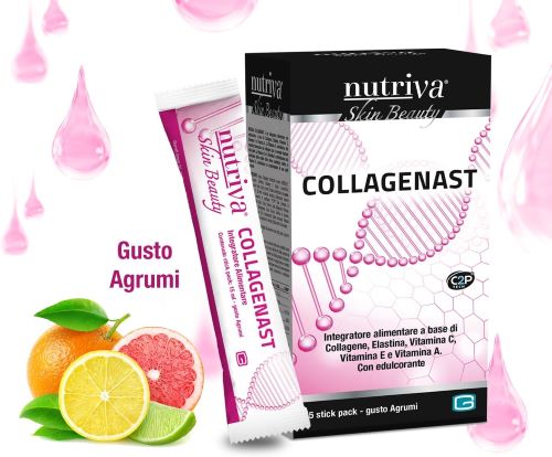 Collagenast, integratore alimentare con Collagene per una pelle giovane: Nutriva Collagenast in 15 buste è un integratore per la pelle d’alta qualità a base di collagene, elastina e Vitamina E, A e C che contribuisce a prevenire l’invecchiamento cutaneo