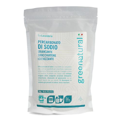 Il percarbonato di sodio è un prodotto eco-compatibile che si utilizza soprattutto per smacchiare e igienizzare la biancheria. Può essere utilizzato per il lavaggio a mano e in lavatrice. A contatto con l'acqua calda, sviluppa ossigeno attivo svolgendo un'azione detergente, smacchiante, sbiancante ed igienizzante sui tessuti sia bianchi che colorati. Particolarmente indicato per il lavaggio dei pannolini lavabili. Si decompone in sostanze già presenti in natura, senza inquinare. Miscela arricchita con Carboidrati e Maltodestrine da Agricoltura Biologica.