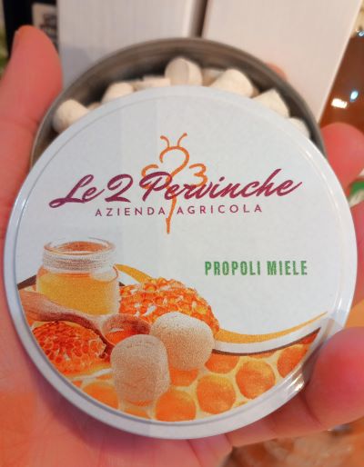 zucchero, miele8 % , destrosio, gomma adragante, gelatina alimentare, estratto di propoli 0,3 %, aromi.