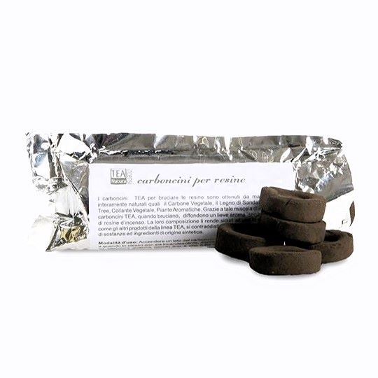 Dettagli super: I carboncini Tea sono ottenuti da materie prime interamente naturali quali il Carbone Vegetale, il Legno di Sandalo e di Work tree, Collante vegetale, piante aromatiche. Grazie a tale miscela di ingredienti i carboncini TEA, quando bruciano, diffondono un lieve aroma senza l'aggiunta di resine d'incenso.