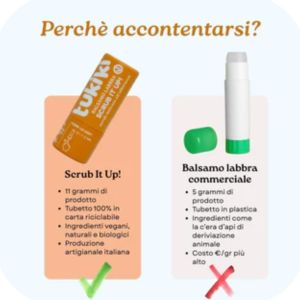 Questo innovativo balsamo labbra esfoliante unisce l'azione levigante di uno scrub e l'idratazione profonda di un balsamo, in un unico prodotto pratico e sostenibile.