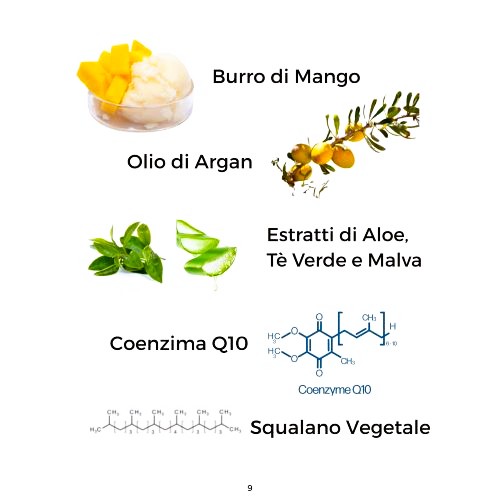- Burro di Mango – Ricco di acidi grassi e antiossidanti, nutre in profondità e dona elasticità alla pelle.