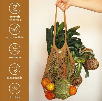 Dettagli super: Grazie alle sue dimensioni di 35 x 45 cm riuscirai a riempirla con tutta la tua spesa, inoltre le fibre di cotone sono estremamente elastiche, per questo potrai espanderla ulteriormente inserendo al suo interno tutto ciò di cui hai bisogno. Una volta utilizzata, piegala in maniera compatta, così che diventi tascabile e pratica da portare ovunque.