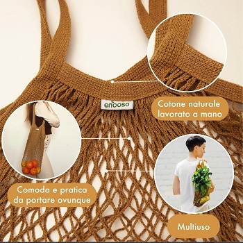 Dettagli super: Grazie alle sue dimensioni di 35 x 45 cm riuscirai a riempirla con tutta la tua spesa, inoltre le fibre di cotone sono estremamente elastiche, per questo potrai espanderla ulteriormente inserendo al suo interno tutto ciò di cui hai bisogno. Una volta utilizzata, piegala in maniera compatta, così che diventi tascabile e pratica da portare ovunque.