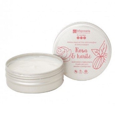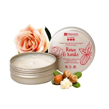 Arricchita con olio extravergine d’oliva, olio di argan, proteine del grano e preziosi oli essenziali di rosa damascena e legno di rosa. Tutti biologici e ricchi di principi attivi che rendono questa crema nutriente e rigenerante ed un ottimo alleato per proteggere le mani dalle aggressioni esterne quali freddo, vento, acqua e detersivi.