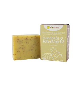 Dettagli super: In questo sapone artigianale a base di olio extravergine doliva biologico è disciolta la dolcezza dellolio di mandorle dolci e la tonificante freschezza dello zenzero.