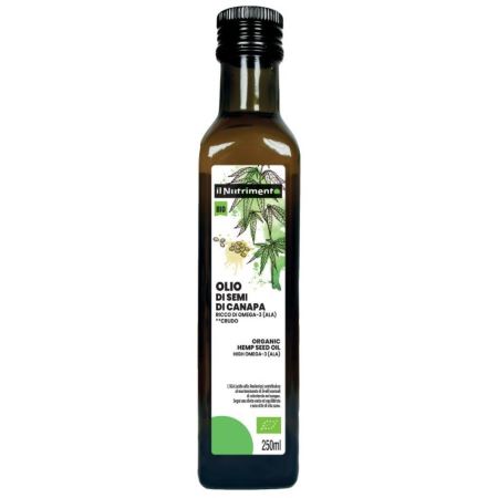 Dettagli super: L' olio di semi di canapa biologico Il Nutrimento è ottenuto senza surriscaldare il seme né la pressa prima della pressione e senza aggiungere calore durante il procedimento di estrazione. È ricco di grassi polinsaturi e naturalmente ricco di acidi grassi omega-3. La sostituzione nella dieta dei grassi saturi con grassi insaturi contribuisce al mantenimento di livelli normali di colesterolo nel sangue. È raccomandabile seguire una dieta varia ed equilibrata ed uno stile di vita sano.