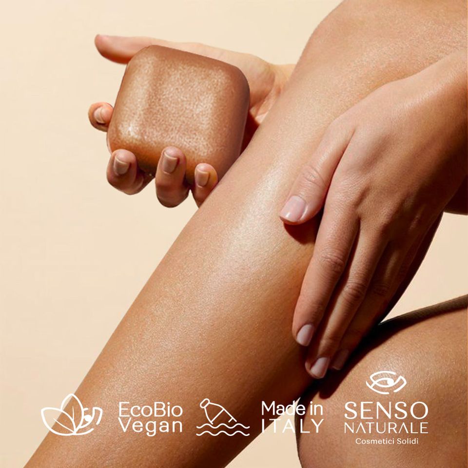 Prunus Amygdalus Dulcis Oil* , Caprylic/Capric Triglyceride, Cetearyl Alcohol, Cetyl Alcohol , Mica**, Cocos Nucifera Oil, CI 77891***, CI 77491***, C13-15 Alkane***, Cetearyl Alcohol, Theobroma Cacao Seed Butter, Astrocaryum Murumuru Seed Butter, Butyrospermum Parkii Butter, Tocopherol , Sorbitan Olivate, Hordeum Vulgare Seed Flour, Helianthus Annuus Seed Oil, Parfum**** | *da agricoltura biologica | **da fonti certificati e sostenibili |***di derivazione naturale | ****senza Ftalati e CMR