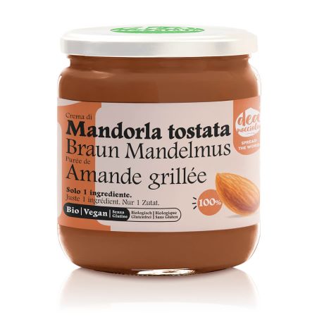 Mandorle intere tostate vengono lavorate per realizzare questa crema gustosa e naturale.