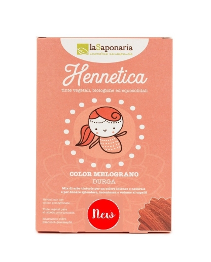 La tinta vegetale color melograno Durga è indicata per chiunque vuole colorare i capelli in modo naturale. E’ perfetta per chi cerca un hennè che copra i capelli bianchi, per chi vuole bellissimi riflessi dalle tinte rosso melograno e per chi cerca un modo sostenibile e naturale di tingere i capelli. La tinta rossa naturale Durga è da intendersi come un vero e proprio trattamento di bellezza: i capelli appariranno più sani, voluminosi e lucenti e quindi è adatta non solo a chi aspira a cambiare colore ma anche a chi vuole solo rinforzare i propri capelli e renderli, applicazione dopo applicazione, sempre più belli.
