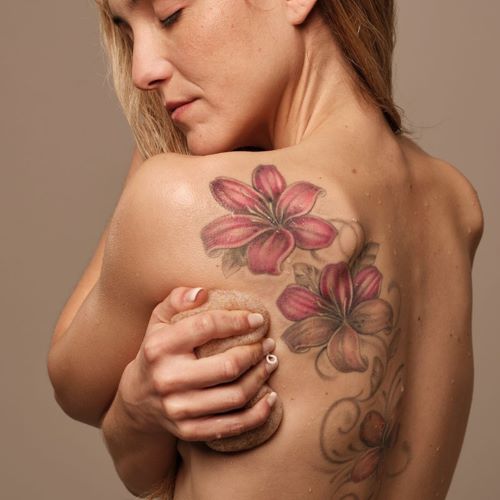 - Massaggia il corpo con movimenti circolari utilizzando la spugna konjac umida.