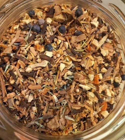Dettagli: Cannella, Garofano,zenzero, coriandolo, arancio d., pino aghi, ginepro.