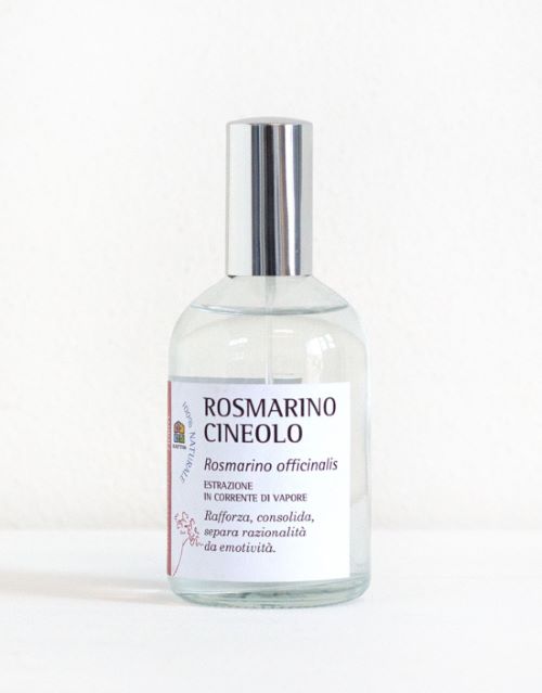 Ingredients: Alcohol Denat (Alcohol di Grano Bio), Aqua (Water), olio essenziale di rosmarino (Rosmarino officinalis ct cineolo essential oil). *Limonene, *Linalolo. *Presente naturalmente negli oli essenziali.