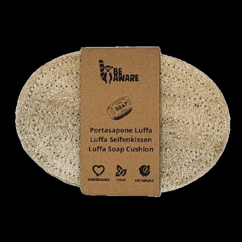 La luffa è molto assorbente ed è quindi ideale anche come base per il sapone. Il liquido del sapone viene raccolto e non ci sono macchie di sapone sul lavabo o nella doccia. Il portasapone può anche essere usato direttamente per la pulizia del lavabo o del corpo, poiché i residui di sapone sono raccolti nella luffa.