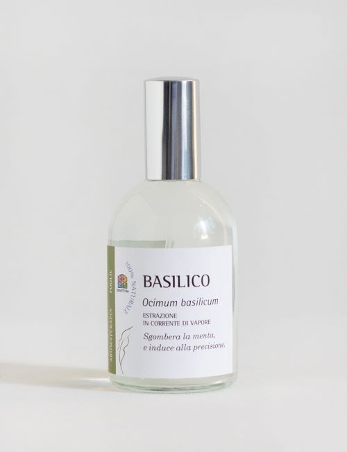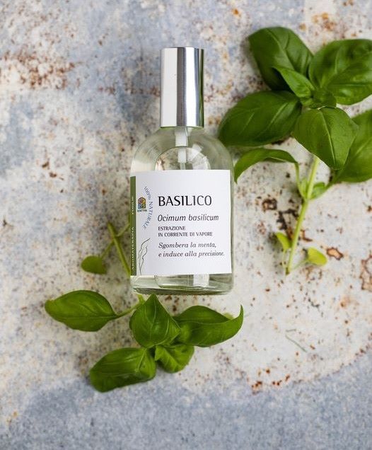 ALCOHOL DI GRANO BIO (ALCOHOL DENAT VEGETALE), WATER (ACQUA), OLIO ESSENZIALE DI BASILICO (OCIMUM BASILICUM).