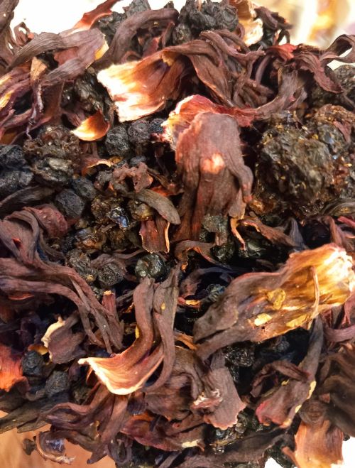 Ibisco fiori, Mirtillo bacche, Ribes Nero frutto, Uva Rossa frutti.
