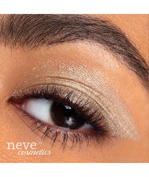 Definisci attaccatura delle ciglia e piega dell’occhio con delicati tratteggi, poi sfuma con un pennello morbido tirando il colore verso l’esterno e completa con un ombretto in polvere di colore intermedio.